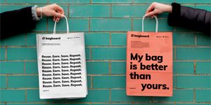 Based in London, Bagboard partners with brands who are kind to people and the planet. They feature their campaigns on smart, eco-friendly paper bags, replacing single-use plastic bags in thousands of local stores across London. Through their conscious shopping app, they empower consumers to reuse their smart bags, promoting those brands as they travel around the city. As a reward, people earn conscious coins, a new digital currency, and are incentivised to spend on the sustainable brands featured on the bags.